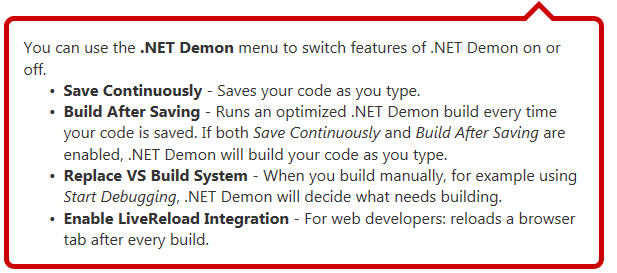 Although it isn’t quite the same thing, I have found NCrunch to enhance my development experience in similar ways to that you describe .Net Demon as doing. However, it not only keeps building things in the background, but runs the unit tests. If you are using something like a TDD approach, then this helps keep the focus on development through tests, with the side benefit that you know if it is compiling or not.