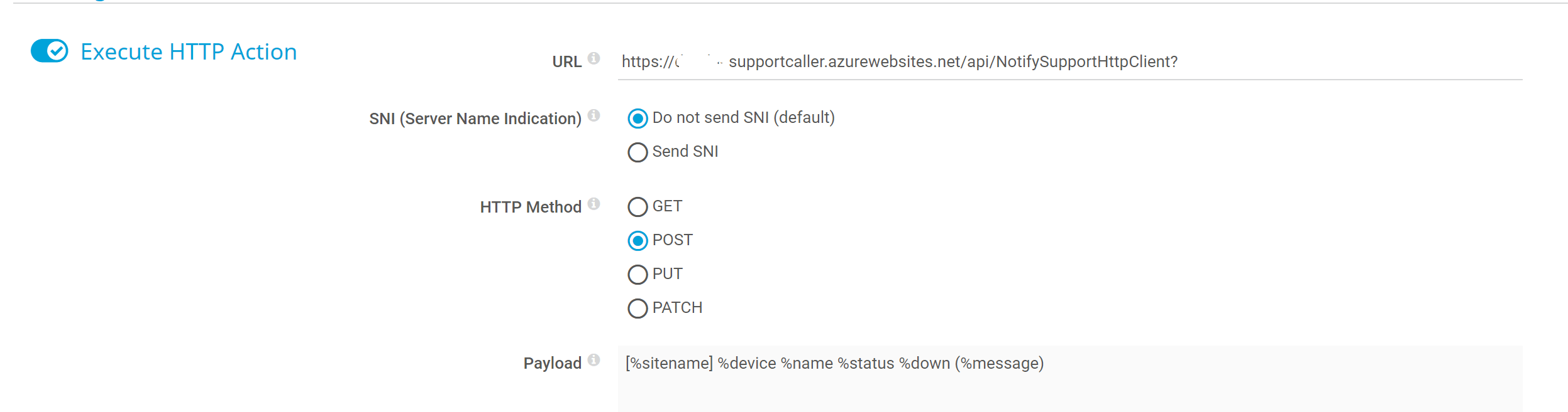 This is really easy to do, here I have a template set up in PRTG which forwards the details of the alert to my durable function like so:-